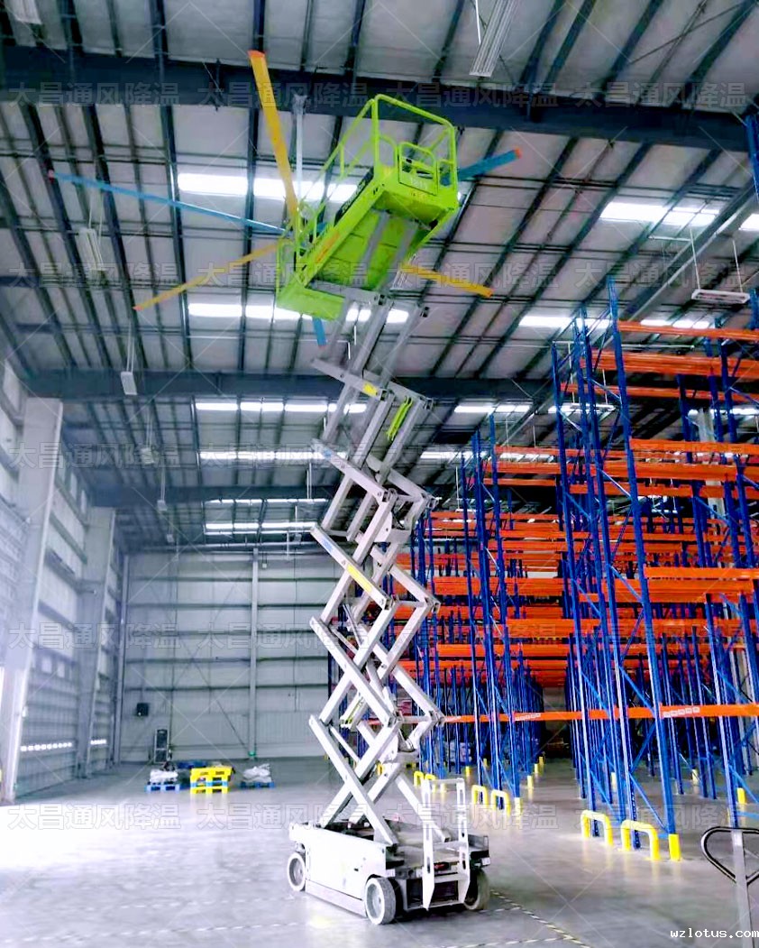 工业大风扇蕞大直径高达7.3米,能够推动大量室内空气流动,能耗低,噪音小,深受客户的喜爱。工业大风扇风量大,气流由上而下成锥形向四面推动,到地面水平方向流动,使厂房车间空气多角度空气循环流通。产生的微风系统还能给降温感受,工业大风扇持续轻柔的微风加快了人体便面汗液的蒸发速度,从而给人5-7°的凉爽降温感受。