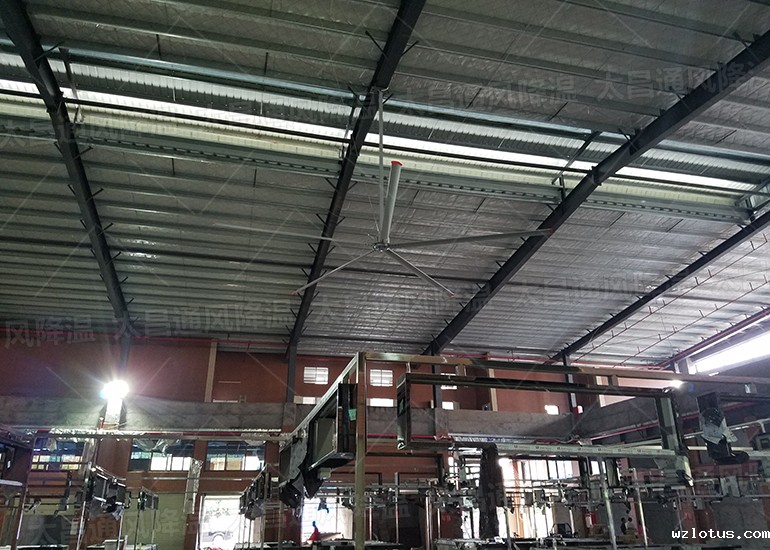 大型的工业大风扇产生的自然微风吹拂在人体上,加快人体体表汗水的蒸发速度,产生自然降温效果,给人们带来了凉爽舒适的感觉。这种温度能让人体皮肤表面感受到5-7℃的温差,能给人体带来舒适的体验。工业大风扇所带来的立体循环风能够让人更加舒适:人们在自然界中积累了对自然风的亲切体验,一但有风速变化的自然风吹拂,人体便感到无比舒适的凉爽。